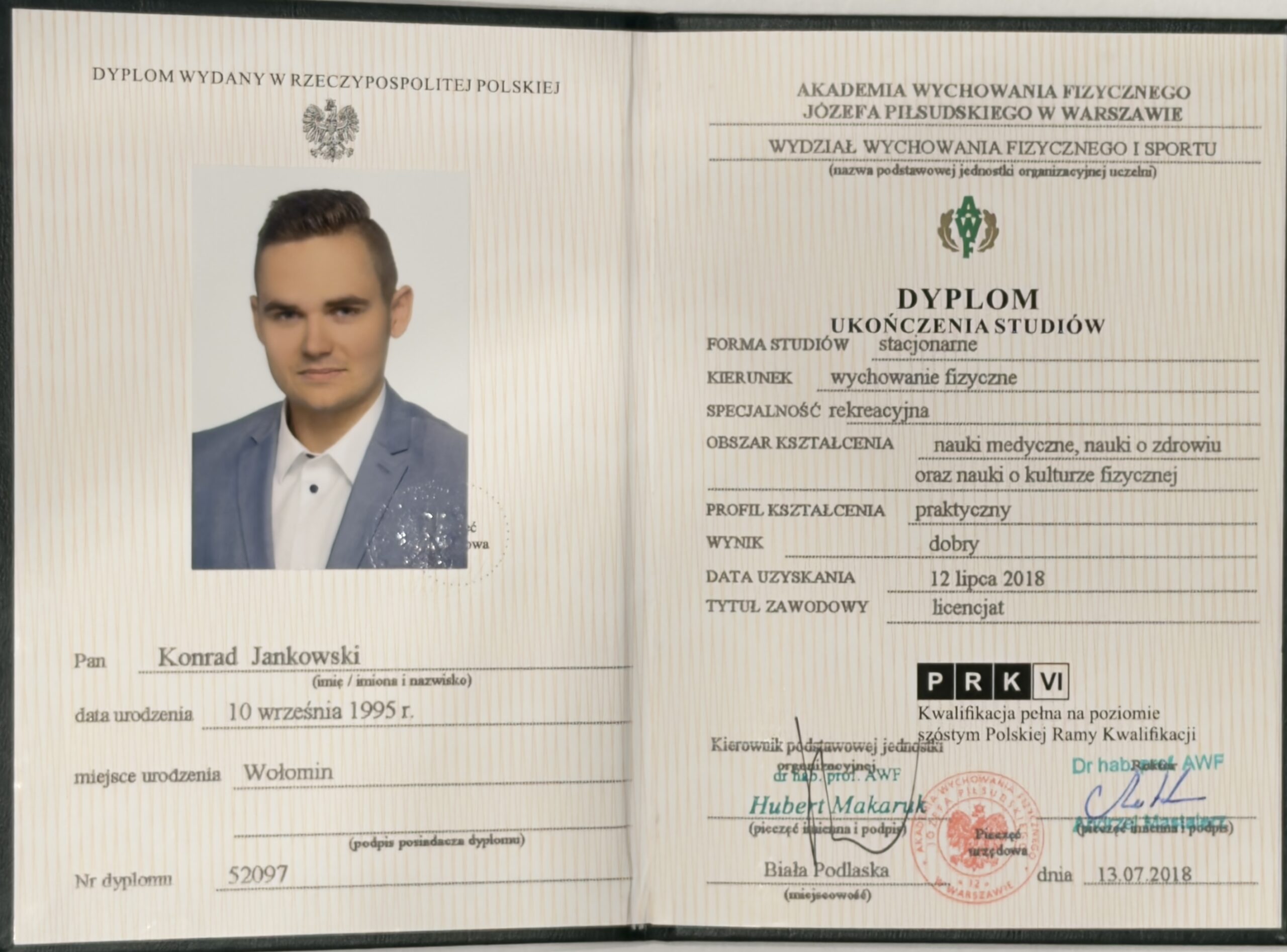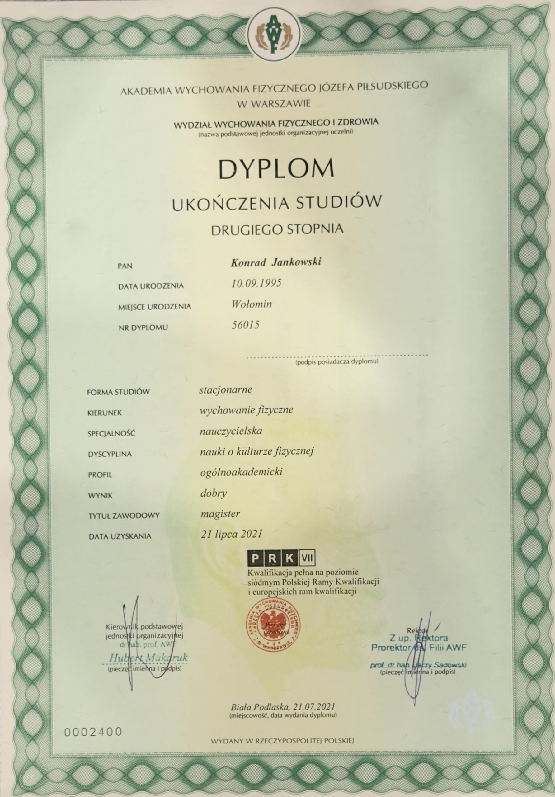 Z wykształcenia jestem magistrem wychowania fizycznego.